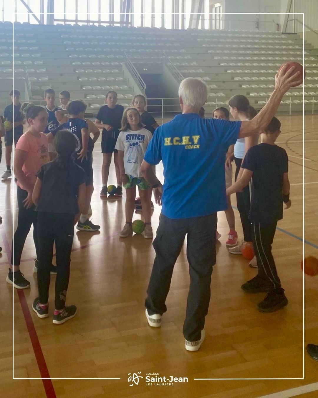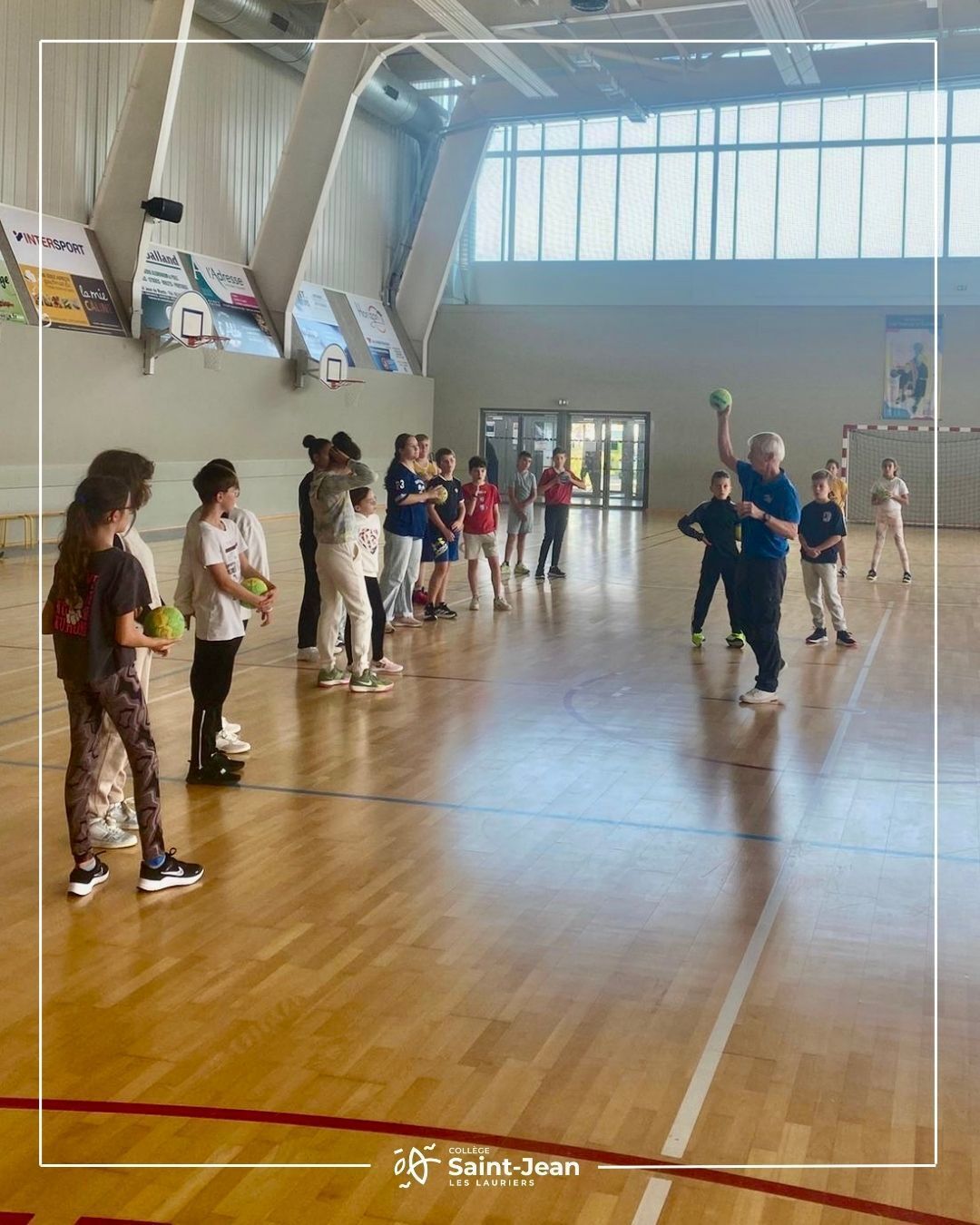 Dans le cadre des cours d'EPS et de la séquence Hand Ball, les 3 classes de 6e ont rencontré Pierre BENOITON, ancien joueur de division deux et aujourd'hui éducateur au Hand Ball club Havre de Vie à St Hilaire de Riez