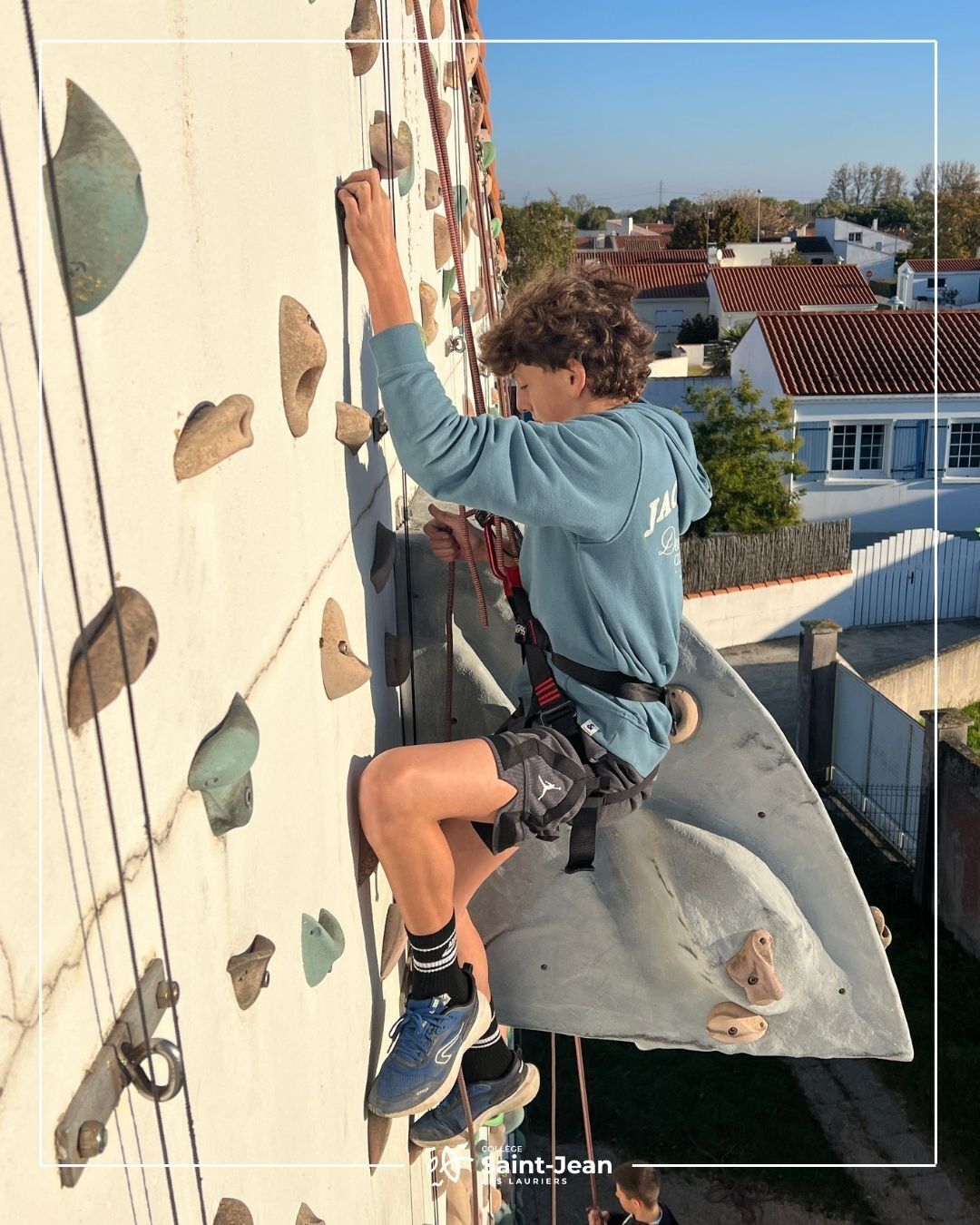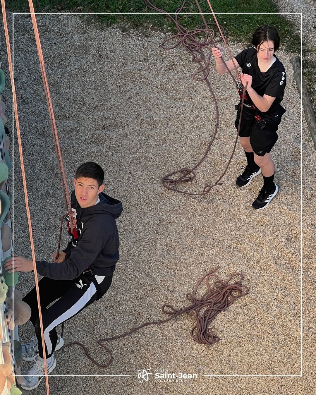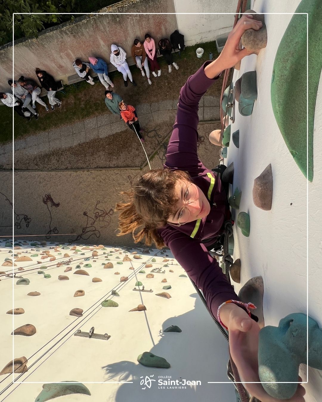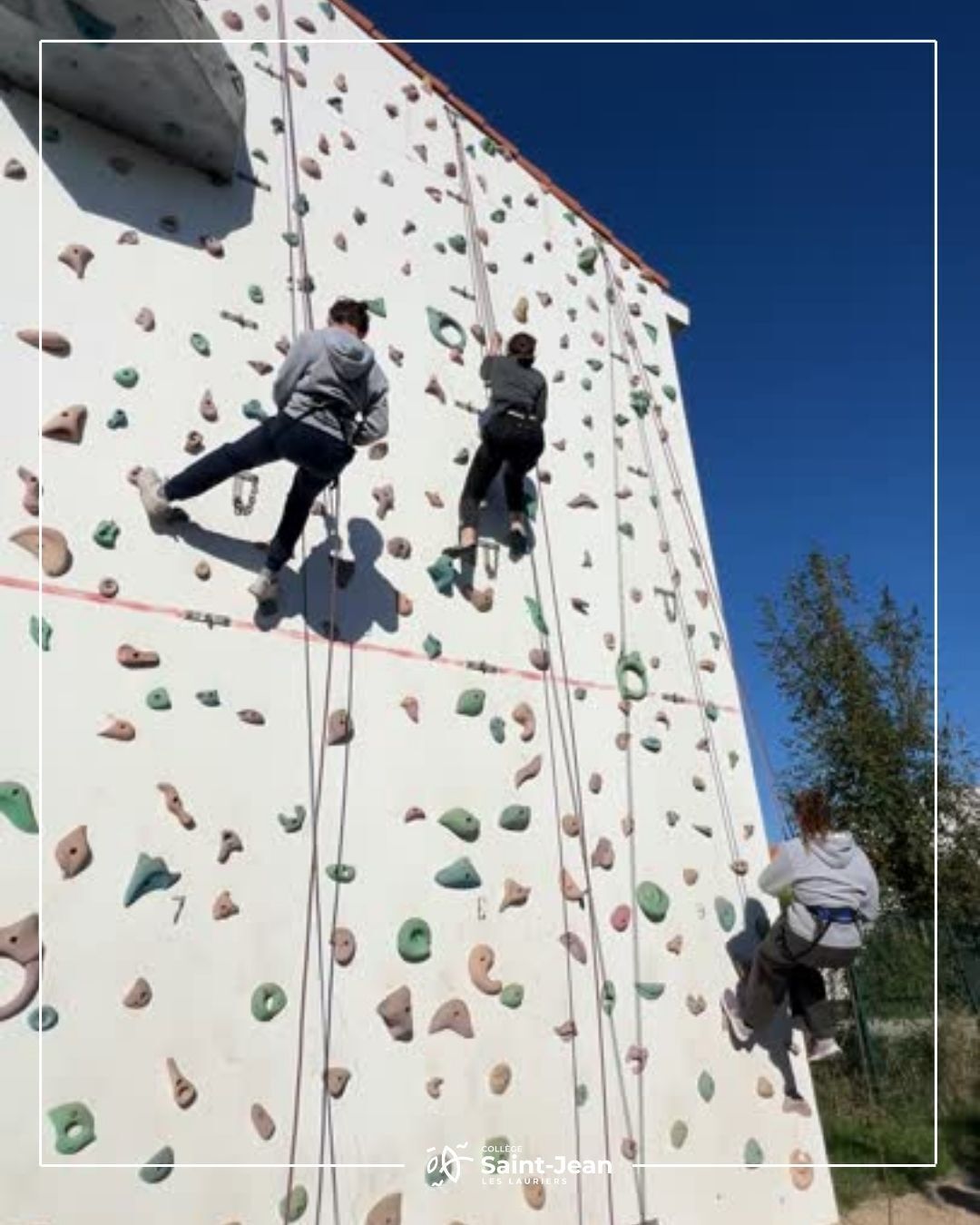 Fin du cycle escalade pour nos élèves de 3e et pour une classe de 5e. Ce cycle intense et passionnant s'achève sur une très belle note. Tout au long de ces séances, les élèves ont su se dépasser, vaincre leurs peurs et gérer leur stress du vide. Ils ont aussi appris à faire confiance à leurs camarades, à s'entraider et à travailler en équipe, des qualités essentielles sur le mur.