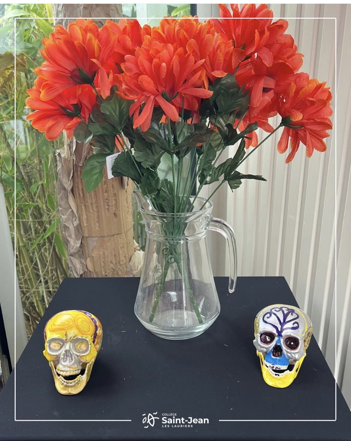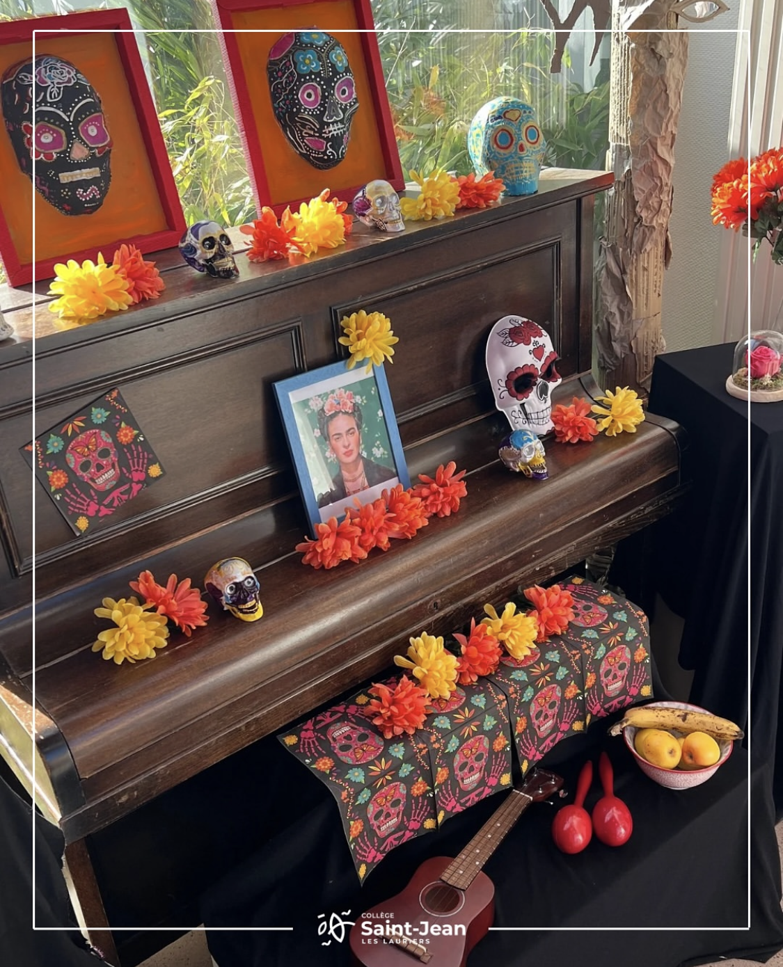 Dans le cadre d'un travail interdisciplinaire en espagnol, musique et arts plastiques sur le 2 novembre au Mexique ou "Dia de los muertos", fête importante pour les mexicains, un autel ou "altar" a été installé dans l'établissement.