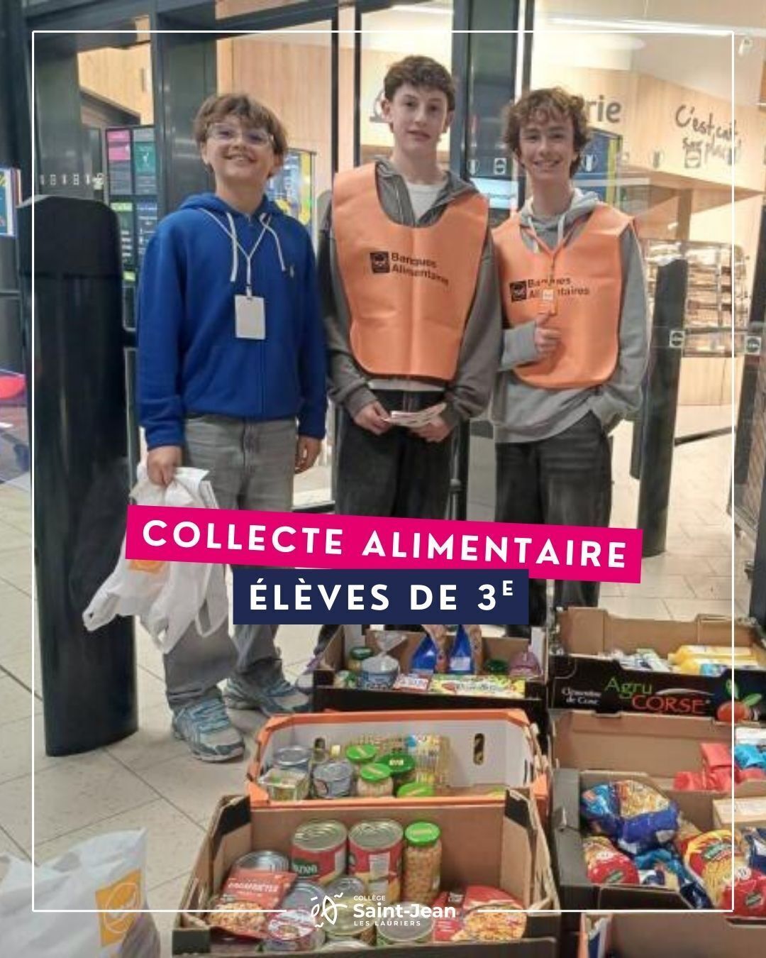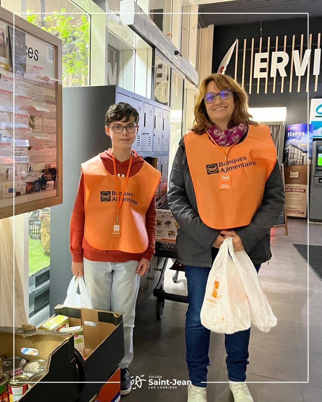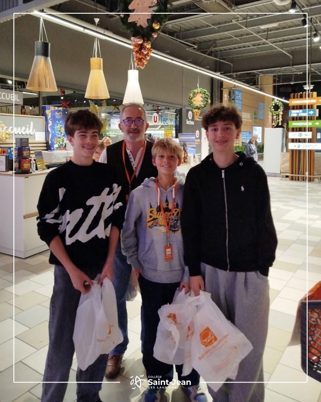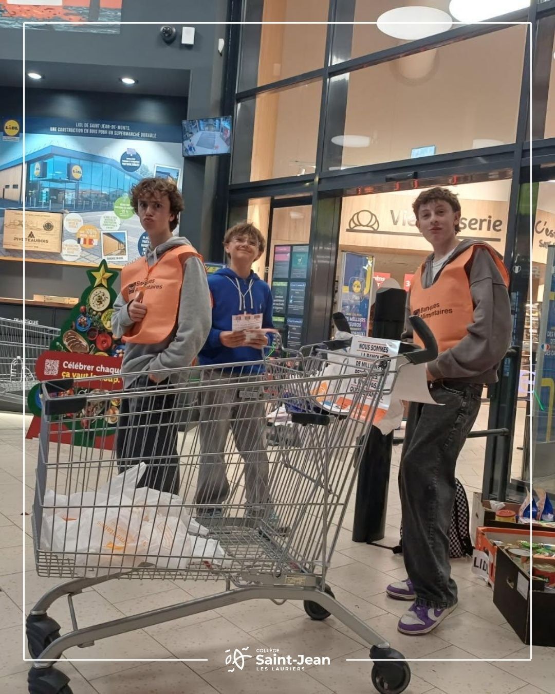 Quelques jeunes bénévoles de 3e ont participé à la collecte de la banque alimentaire dans les supermarchés de St Jean de Monts.