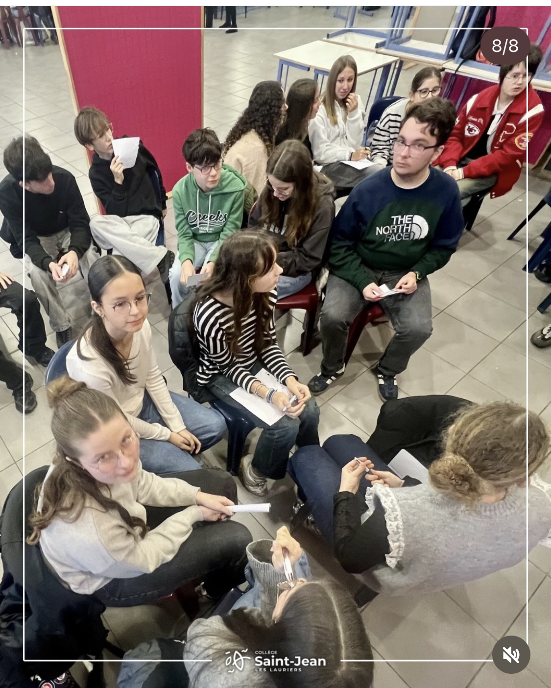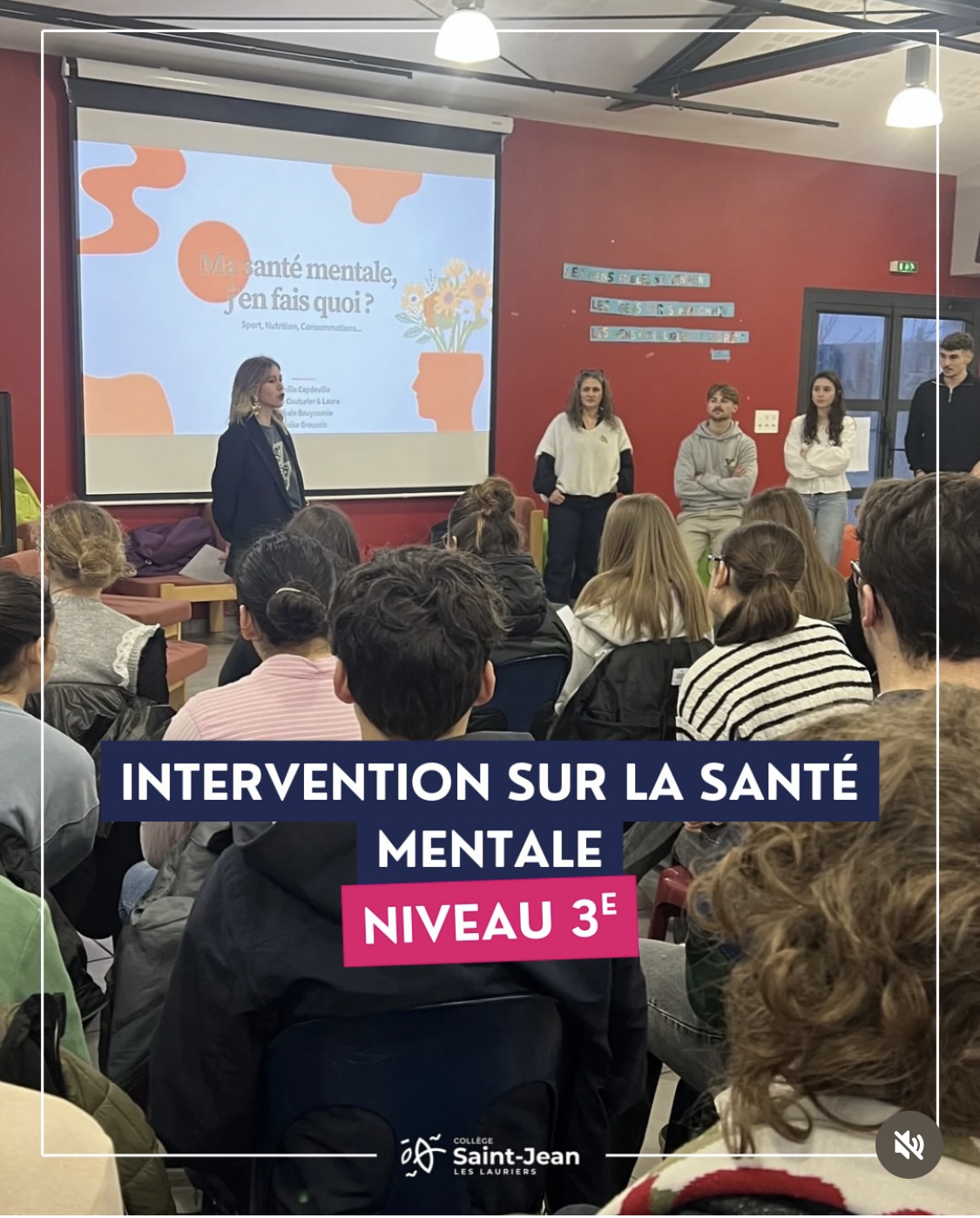 Les élèves de 3e ont participé à une intervention autour de la santé mentale proposé par Eloïse GROUSSIN, étudiante en psychologie. Pour enrichir cette action, elle a réuni plusieurs professionnels : un nutritionniste, un éducateur spécialisé et un éducateur sportif. Autant de regards complémentaires pour montrer que la santé mentale se construit au quotidien : dans l'alimentation, dans l'accompagnement, dans l'activité physique... et surtout dans le dialogue. Un moment d'échange riche et constructif pour aider nos élèves à mieux comprendre, à prendre soin d'eux et à oser en parler.